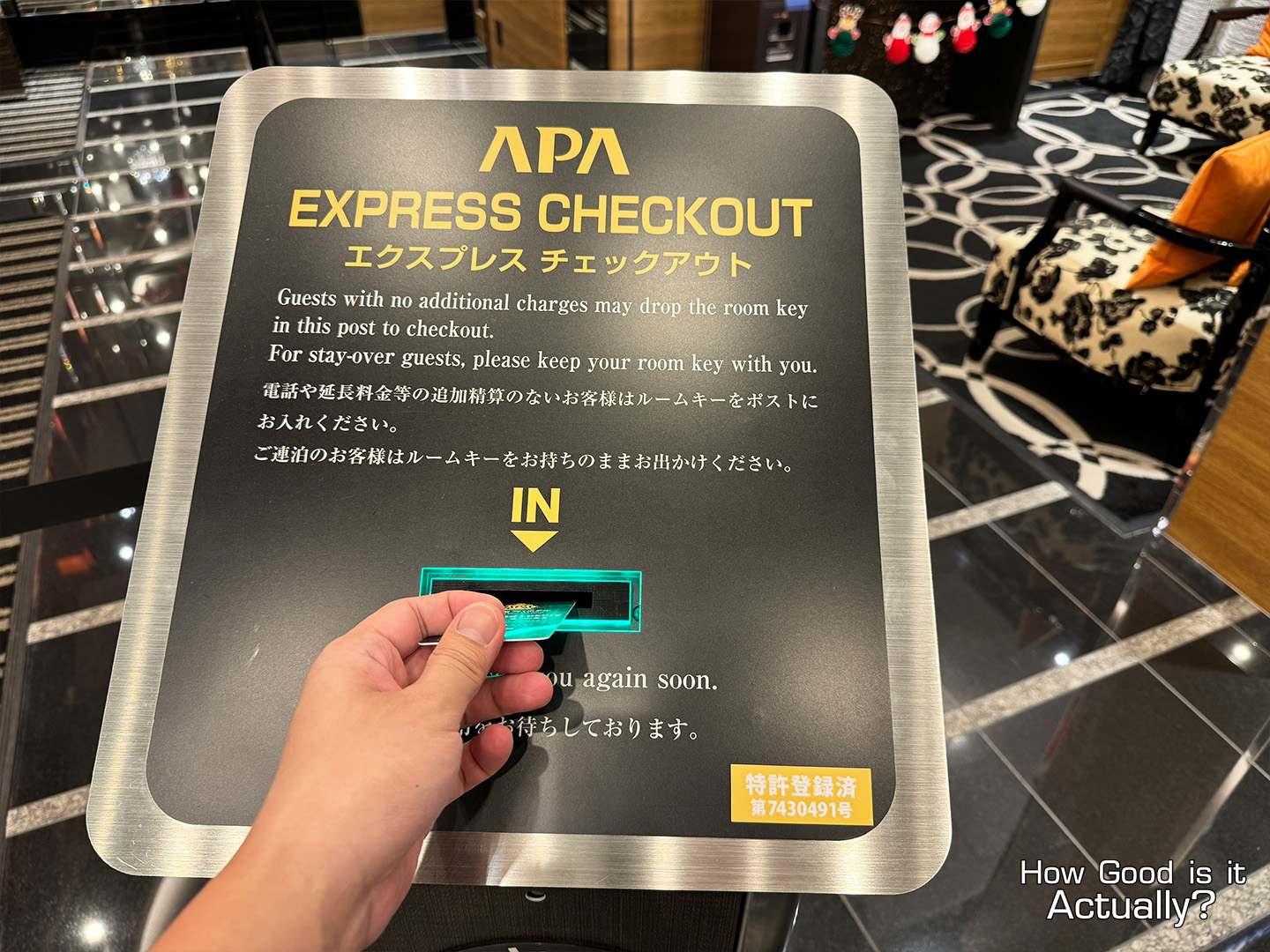 To check-out at APA Hotels, you can hand over your key cards by the concierge desks like the usual hotels. But if you don’t have any extra fees, you can also find Express Check-out machines by the exit. Just insert your key cards into the machine and you’re good to go!