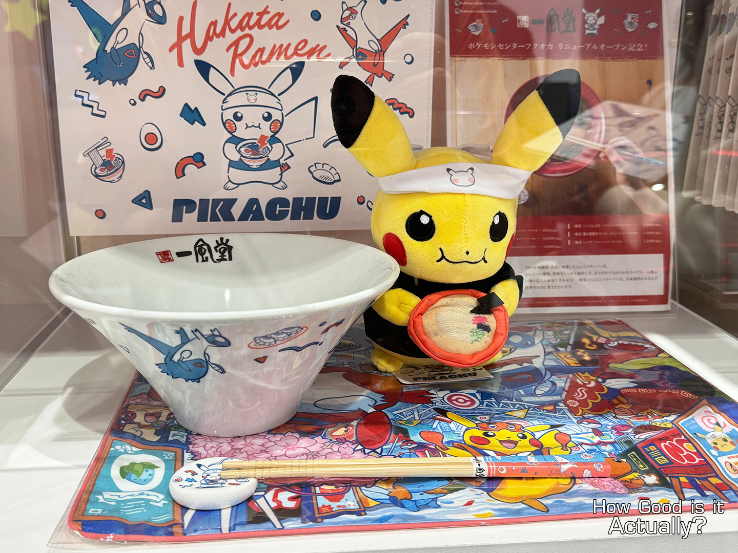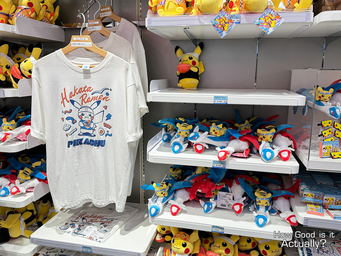 As a city known for its vibrant culinary scene, the Pikachu Mascot here and many of its store-exclusive merch features the city’s famous Tonkotsu Ramen and Yatai Food Stalls.