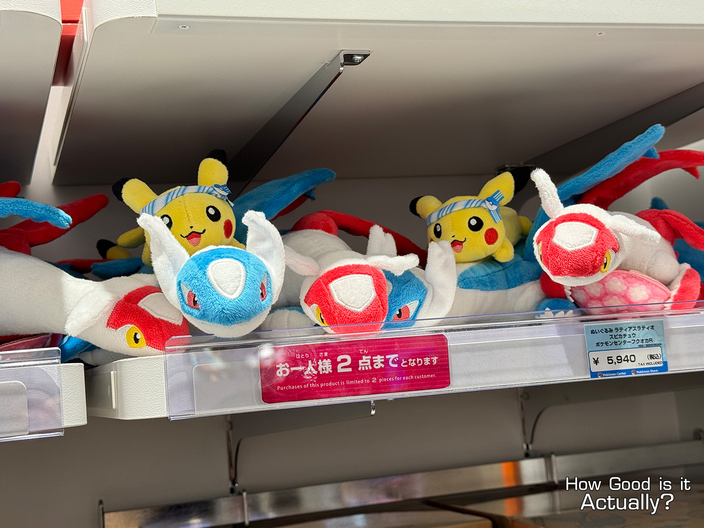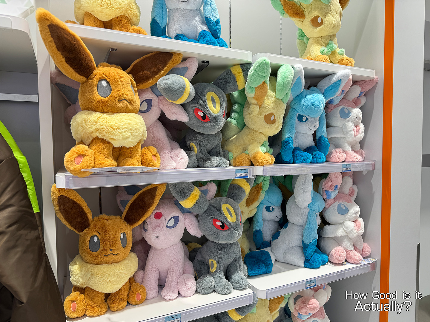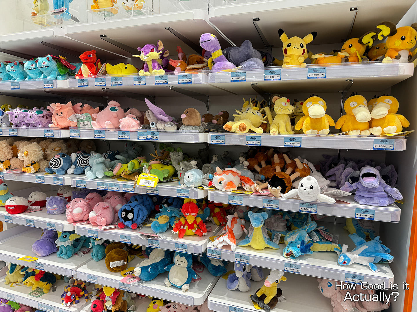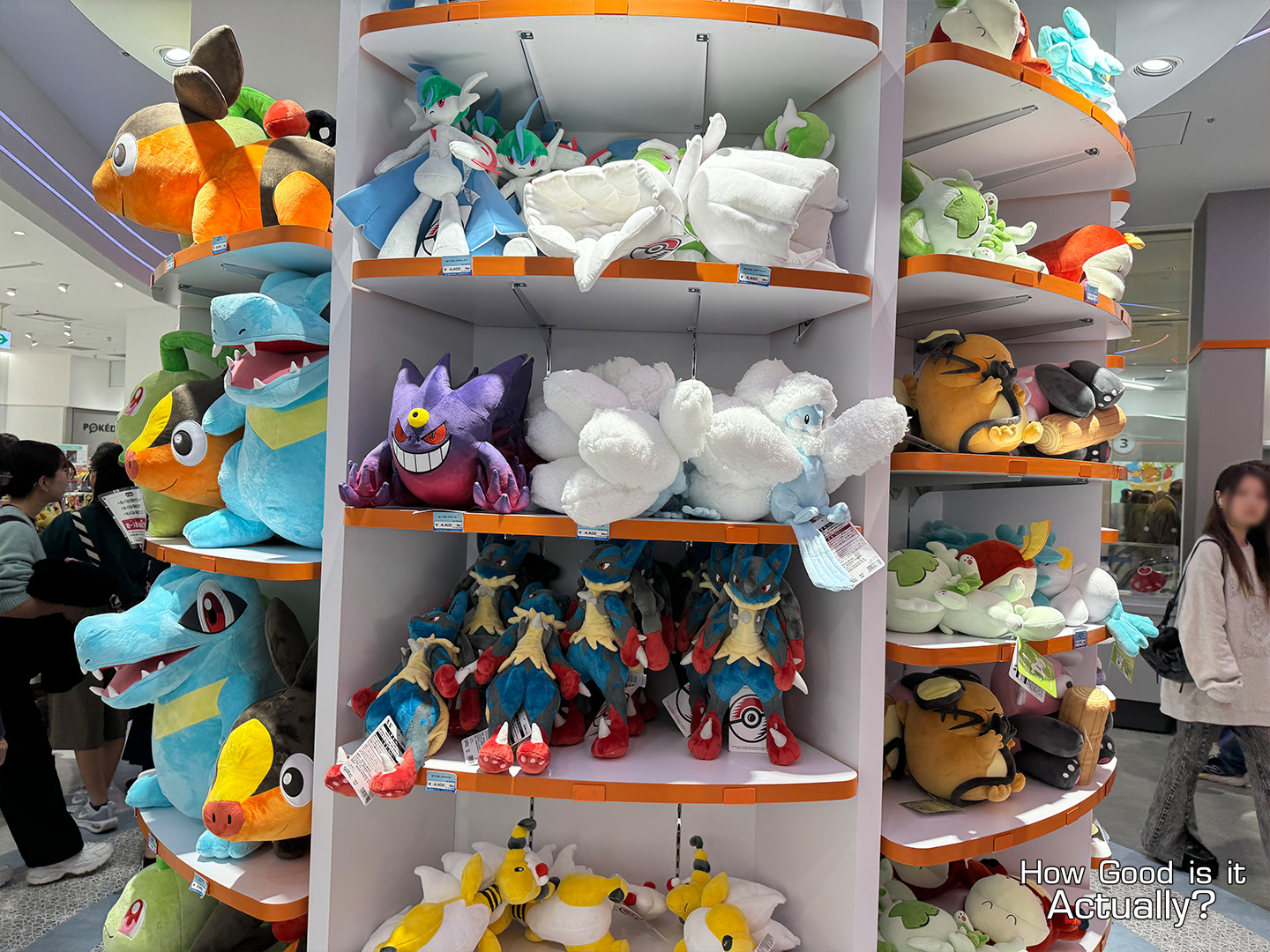 Like seriously, the amount of different plushie lines they have here is really impressive – From the different starters, to trainers from Pokémon Masters EX, to some weird and wacky ones like their seasonal ‘Dowasure’ Amnesia and long-armed Hug You! lines.