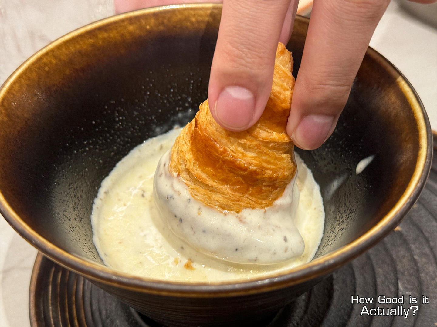 Their soup is truly something special. The cream base provides a full-bodied experience that manages to stay remarkably light due to their aeration, while the truffle delivers an impressively clean aroma profile that’s nothing short of “premium” – achieved notably without the ‘filler’ notes of mushrooms.