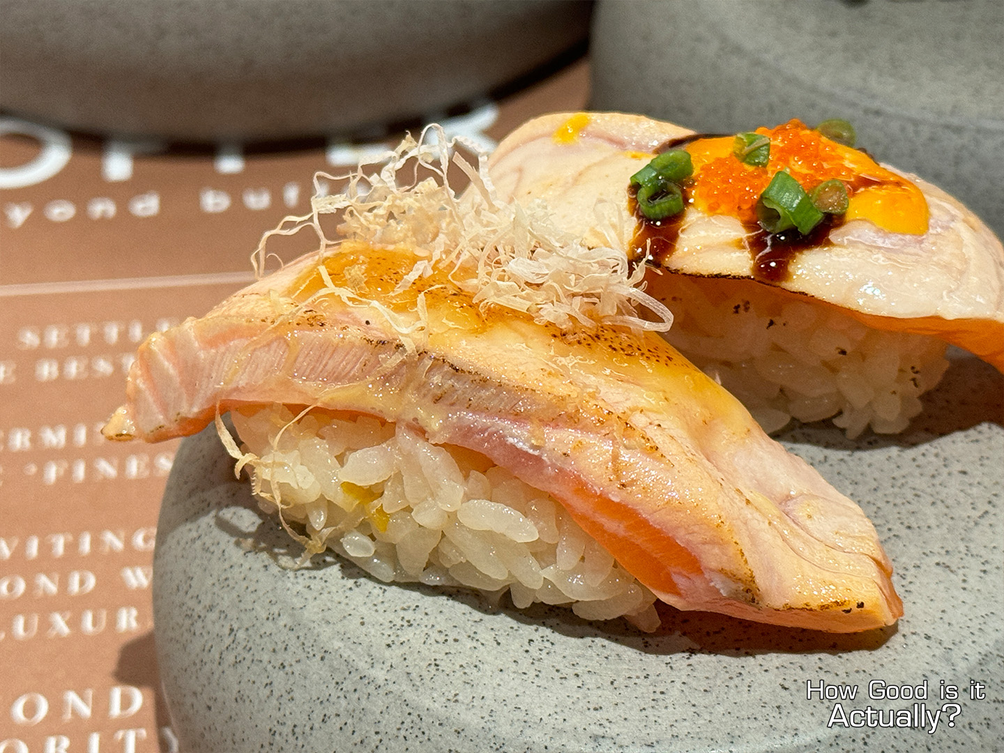 The Original Nigiri was fresh and bright-tasting. While the others feature the exact same base, just slightly torched and finished with either a spicy sauce, or a savory miso-based sauce
