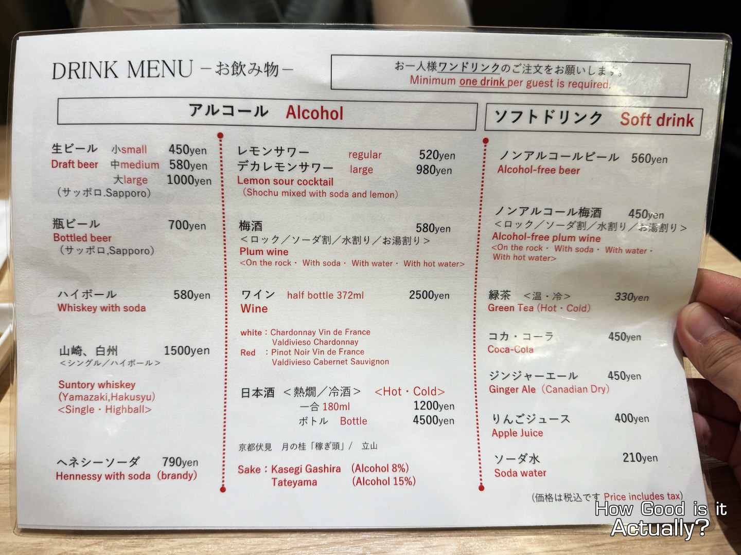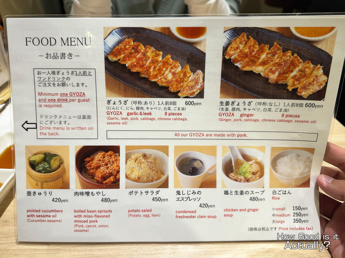 Side Note: As with most bar-type stores in Japan, you’re required to order a minimum of one Gyoza and one drink per person.