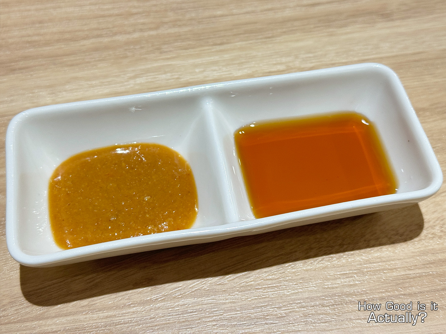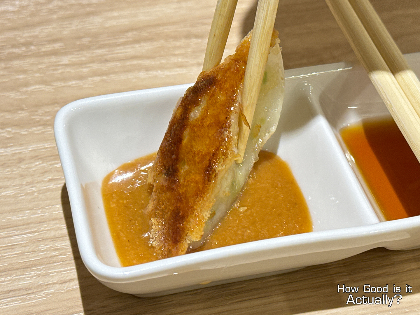 Go for whichever one you prefer, of course. But while I’m always a fan of the traditional Gyoza sauce, the miso was surprisingly good as well with its heavier and more savory flavor profile.