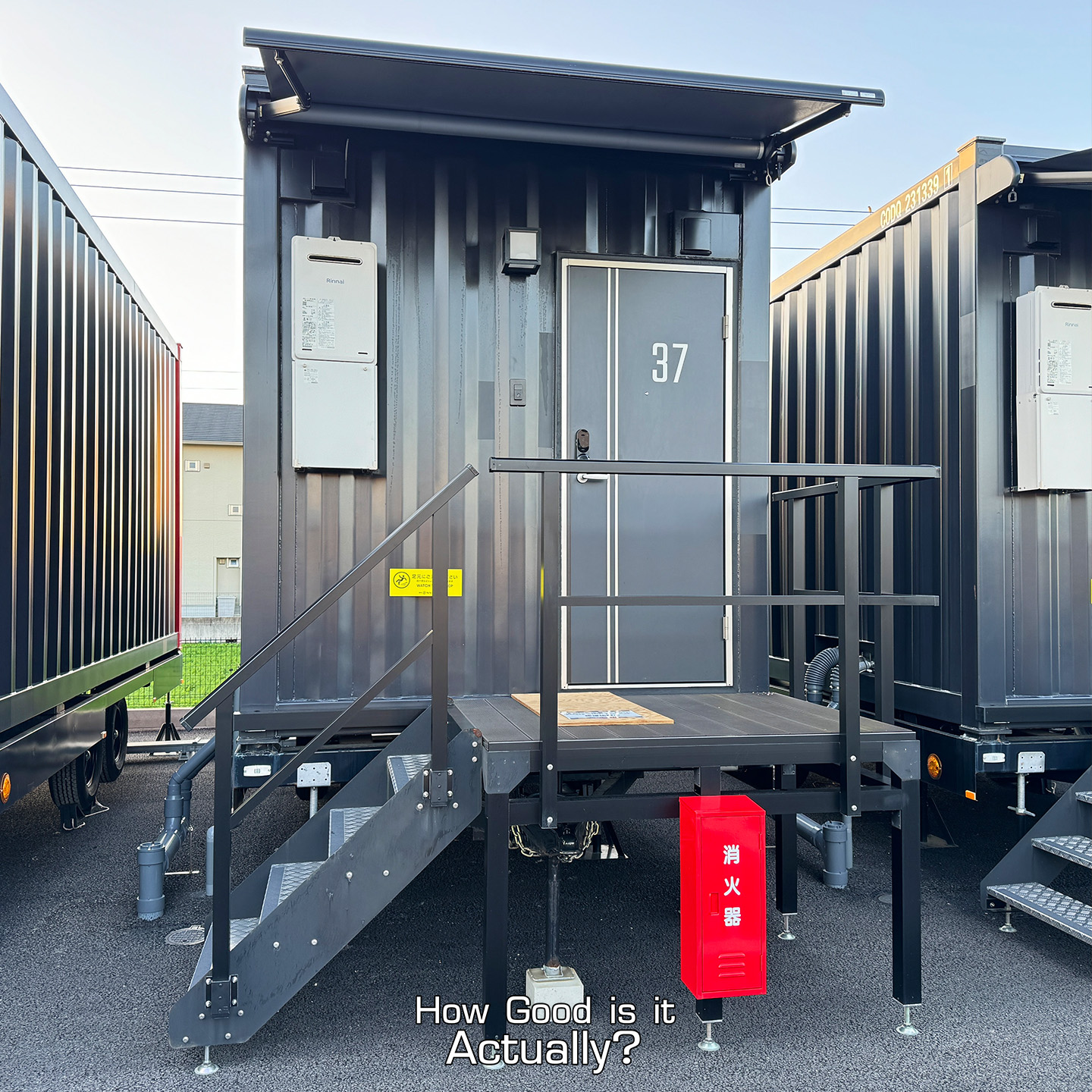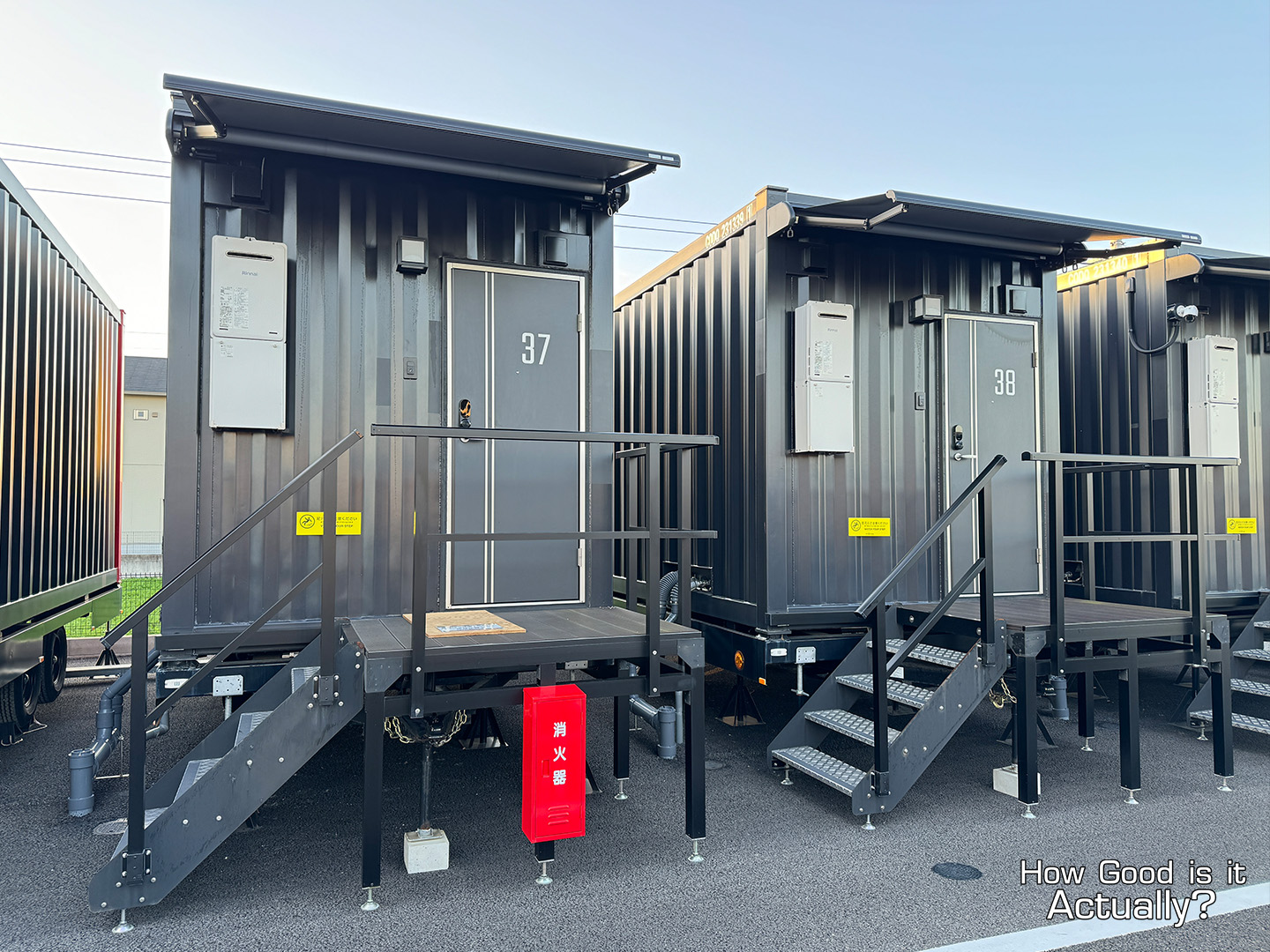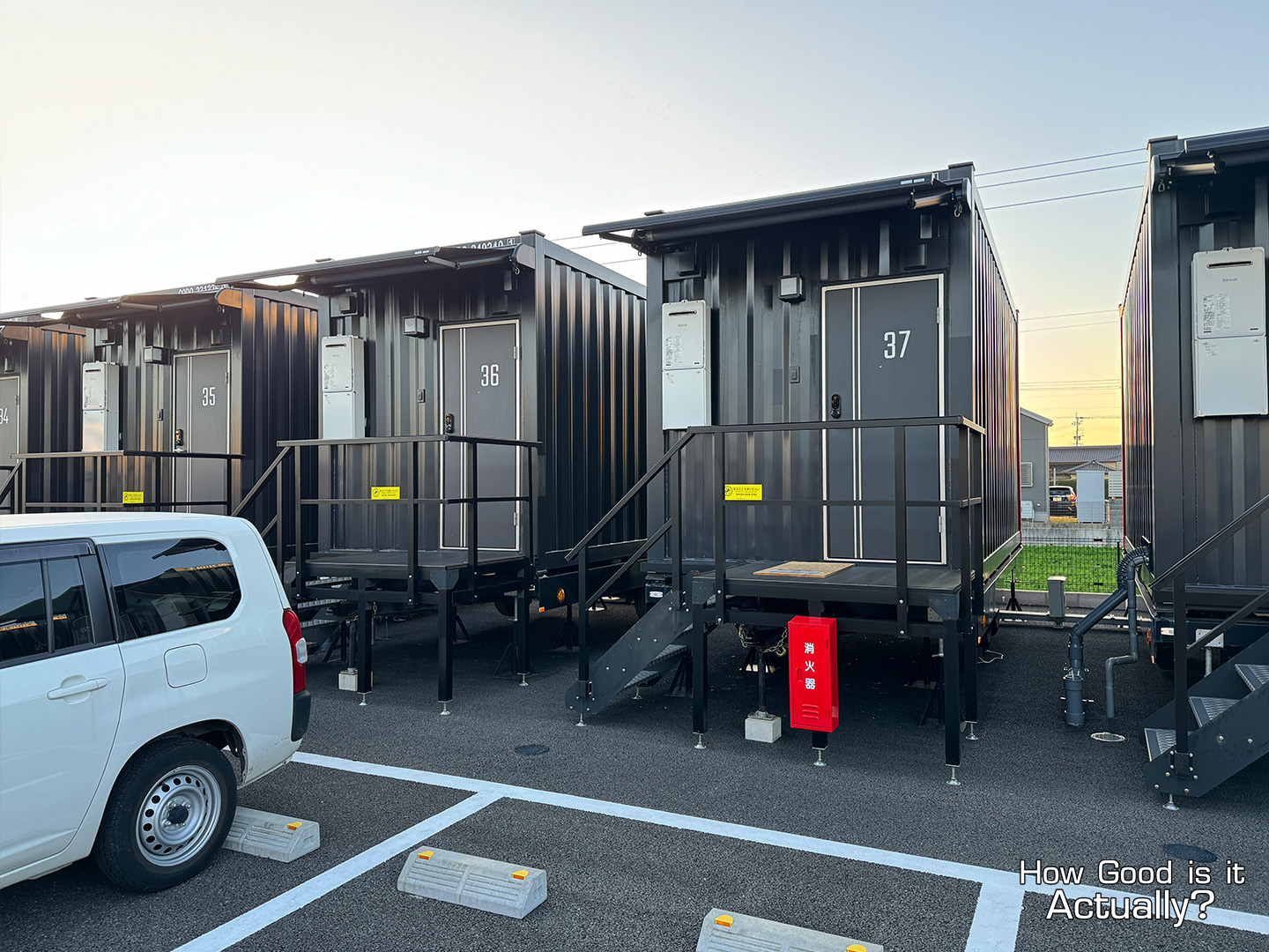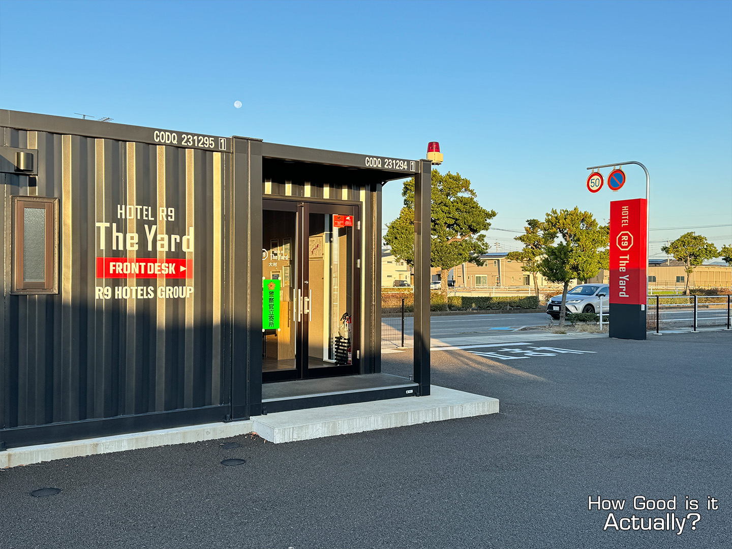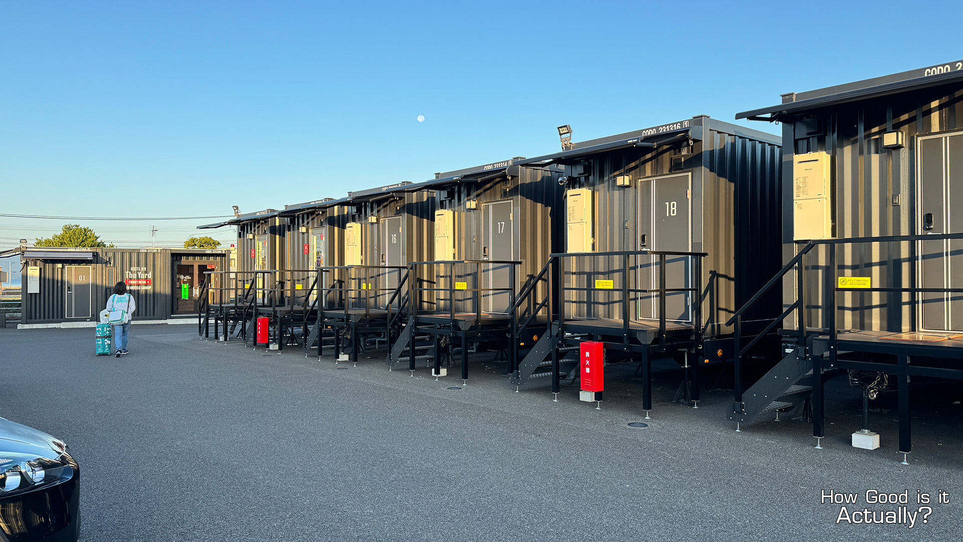 Upon arrival, you’ll quickly notice that the hotel is essentially just a parking lot with tons of shipping containers and car parking spaces.
