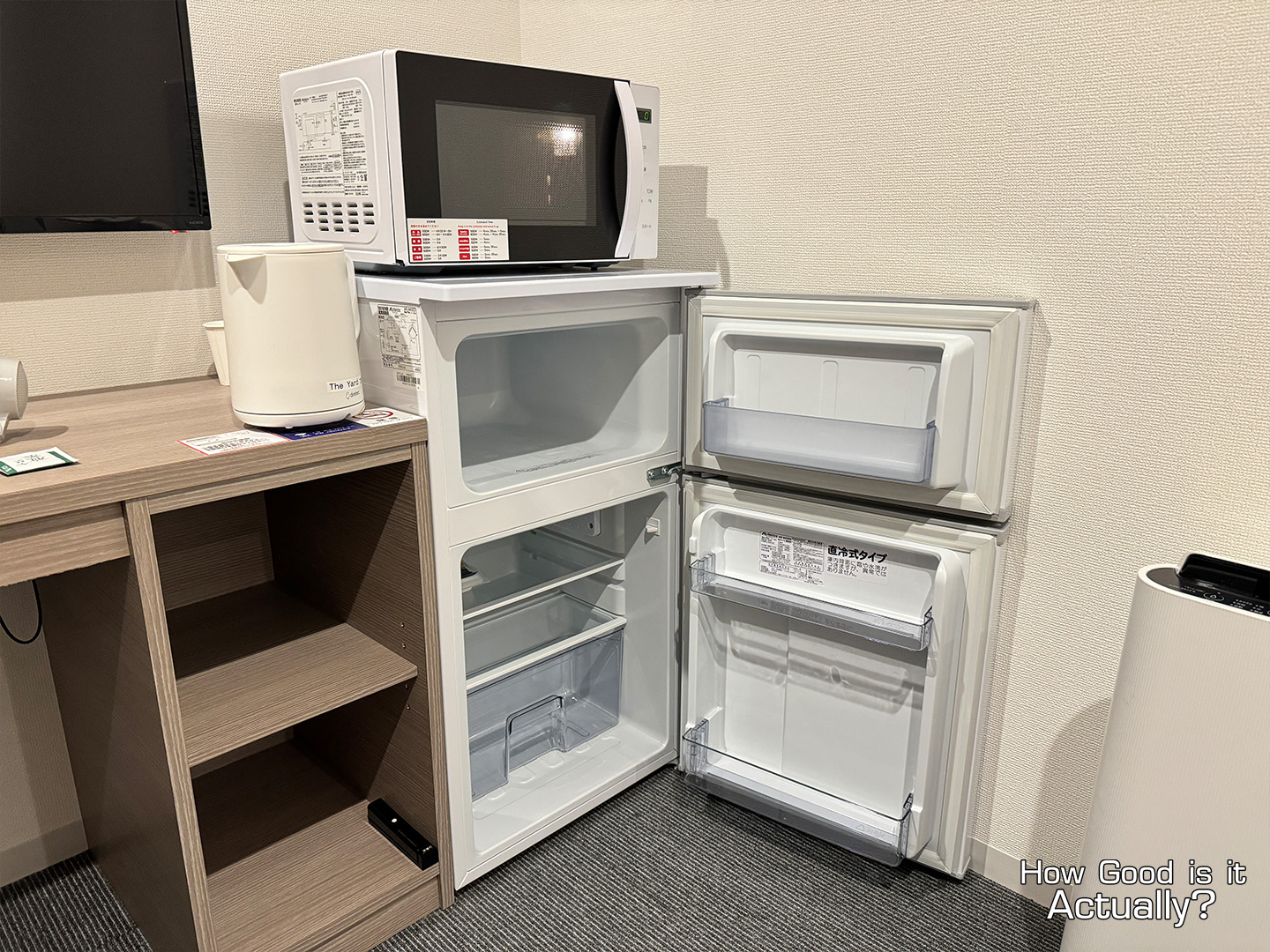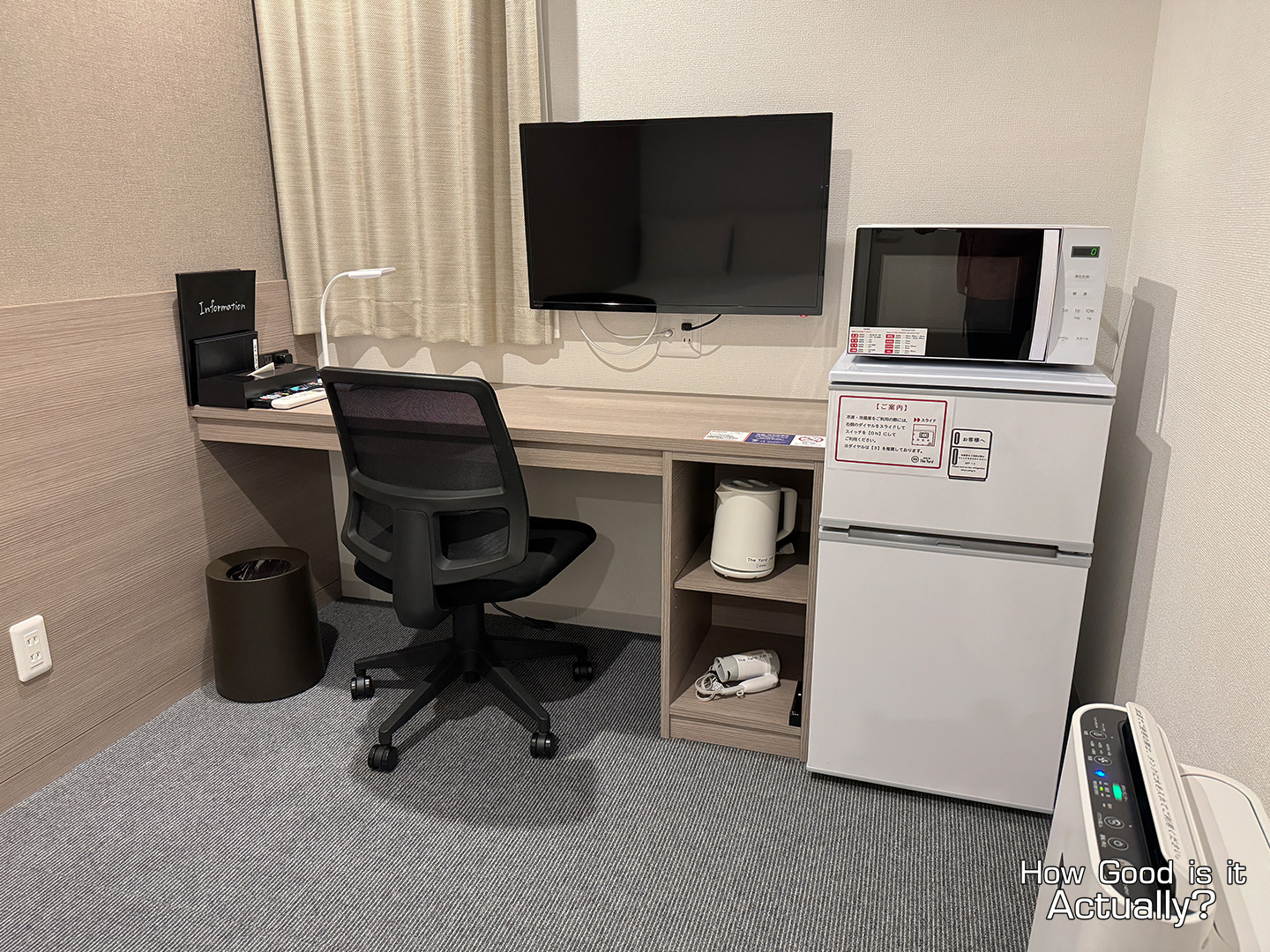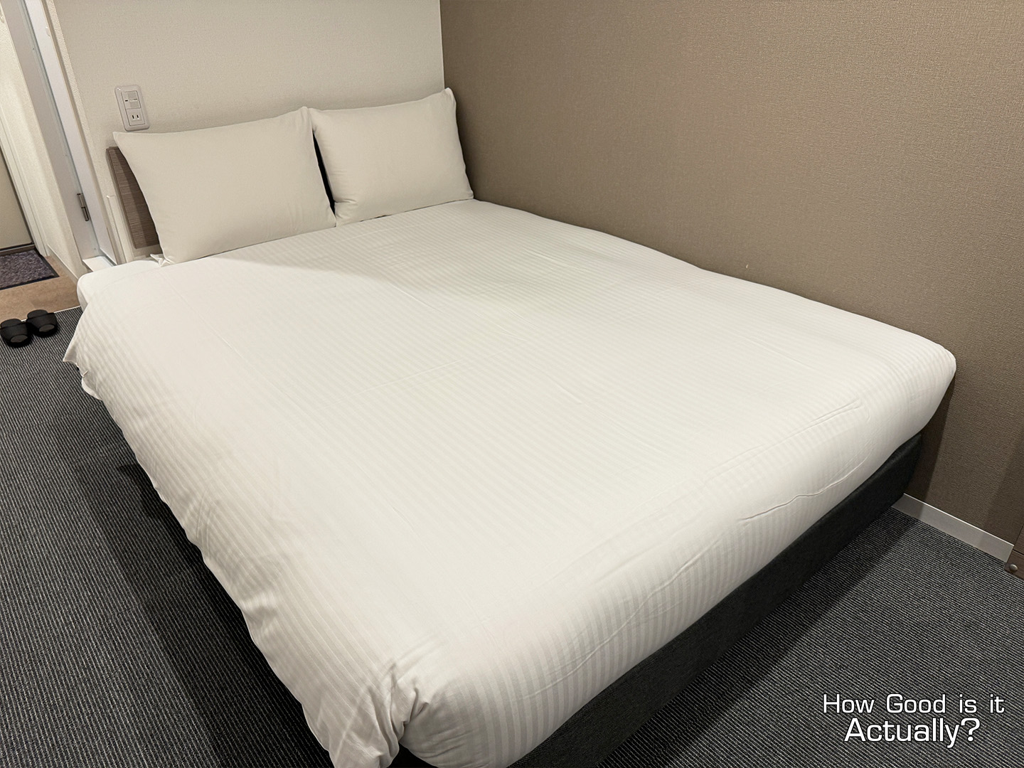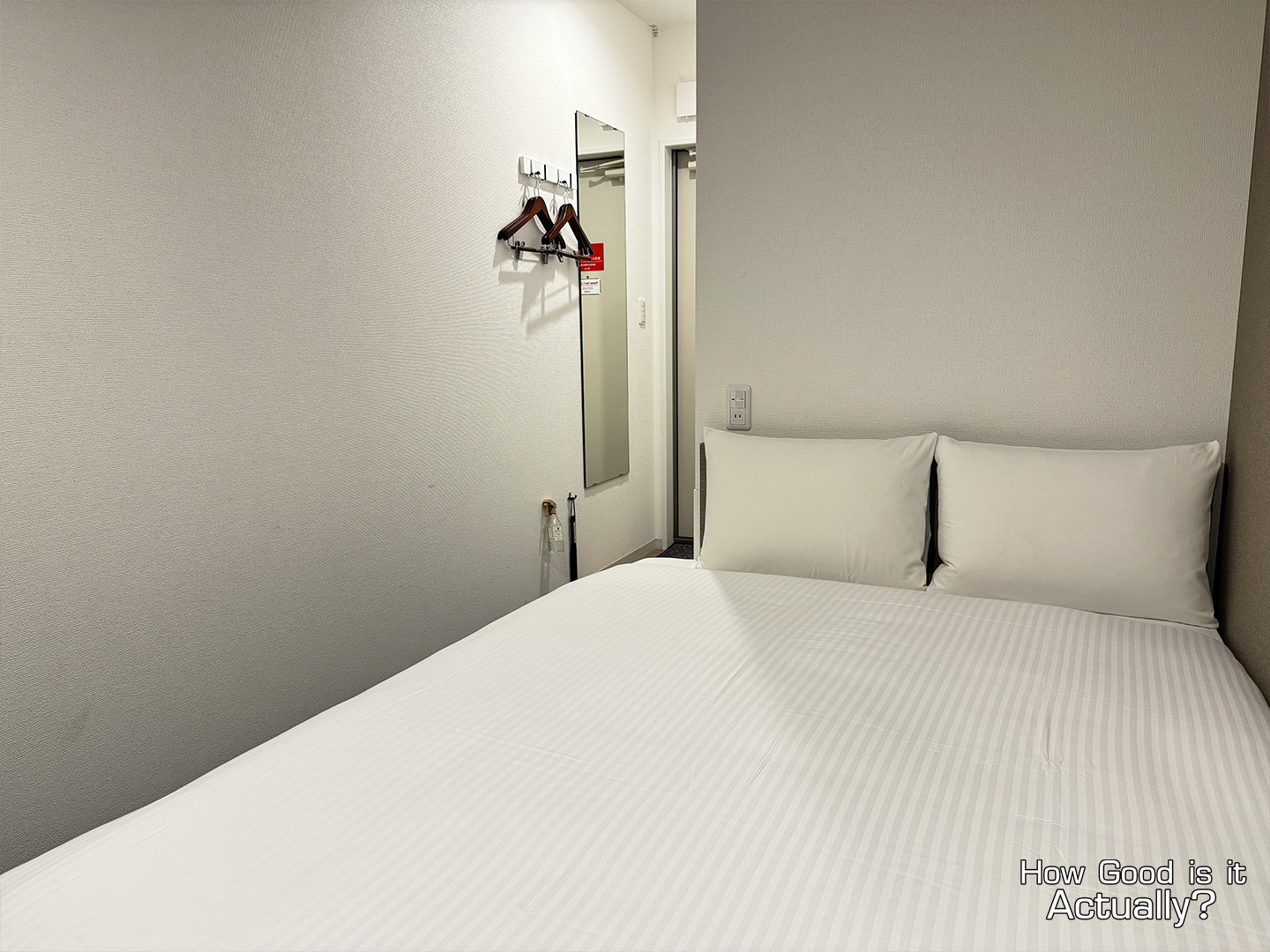The Double Bed’s mattress and blanket are quite good. The bedframe is positioned a little lower to the ground than what I’m used to at home – but that’s not too uncommon in Japan from my experience.