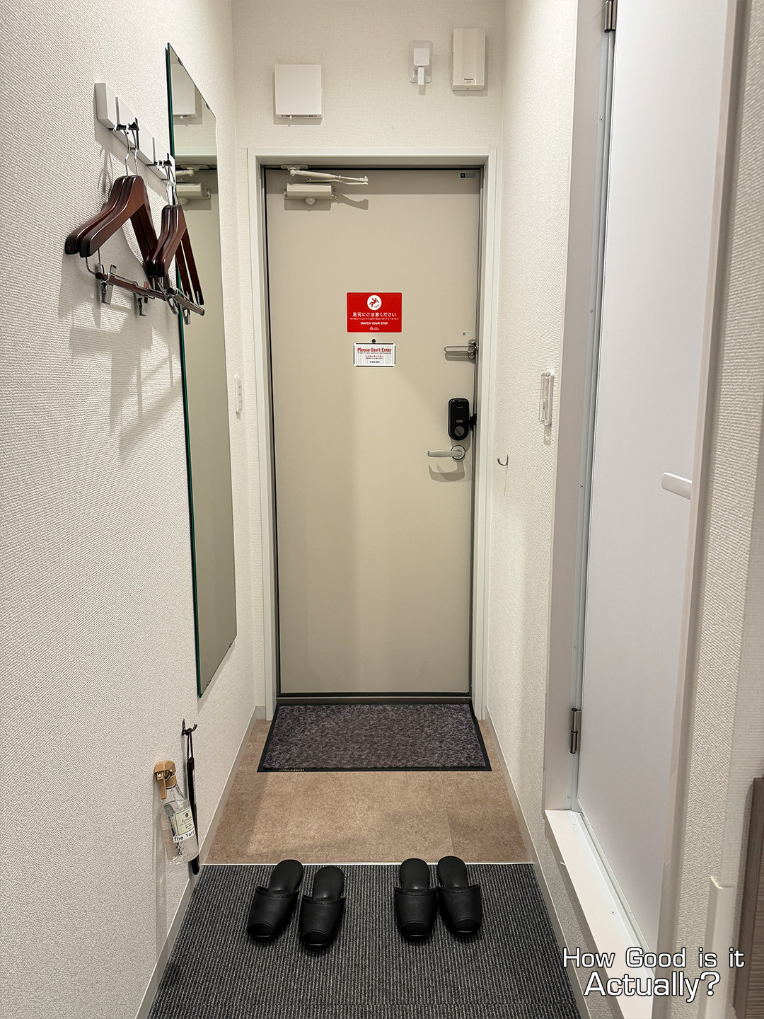 The room’s hallway leading up to the door is decently spacious, and I was able to lay my luggage flat and fully open without any trouble.