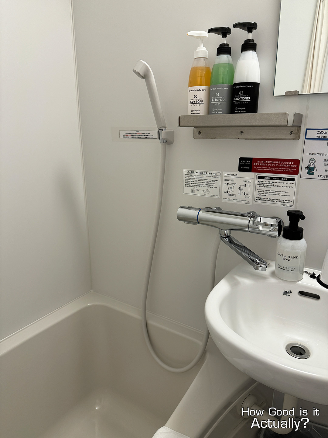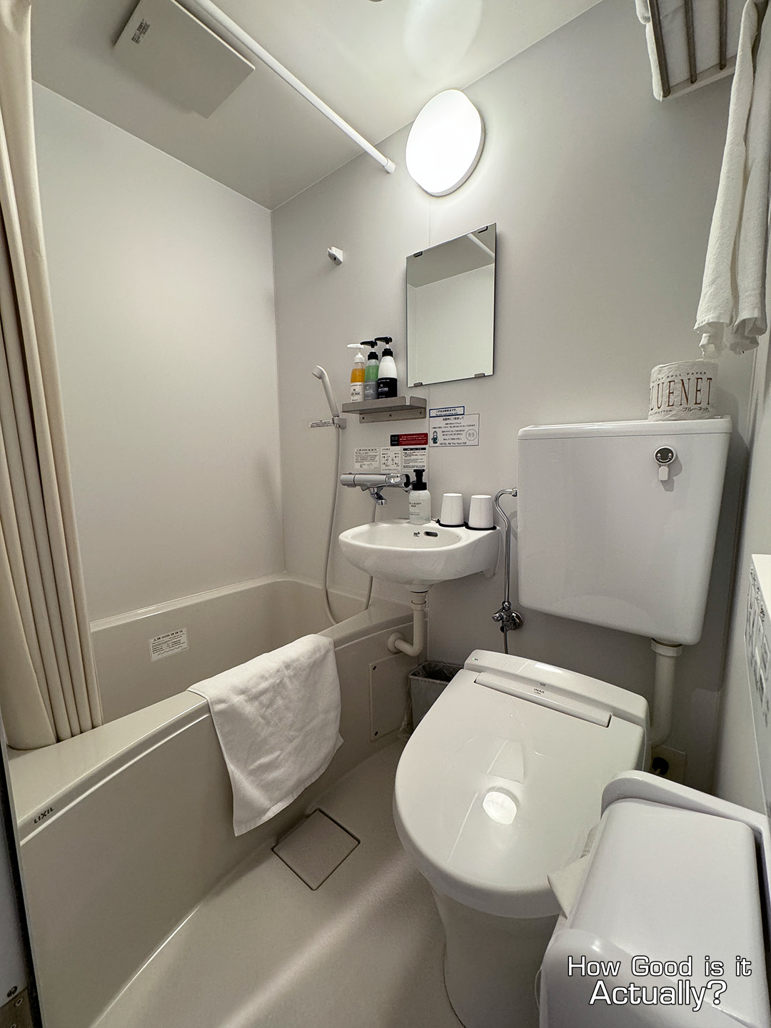 Standard Japanese hotel bathroom in both size and function – small, but compact.