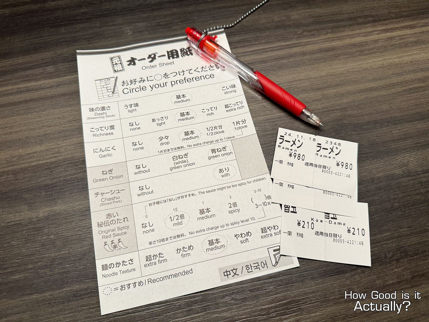 For Ichiran specifically, I highly recommend you give the firmer noodle options a go, whether it be the “かため/Katame/Firm” “超かた/Cho-Kata/Extra Firm” options a go!