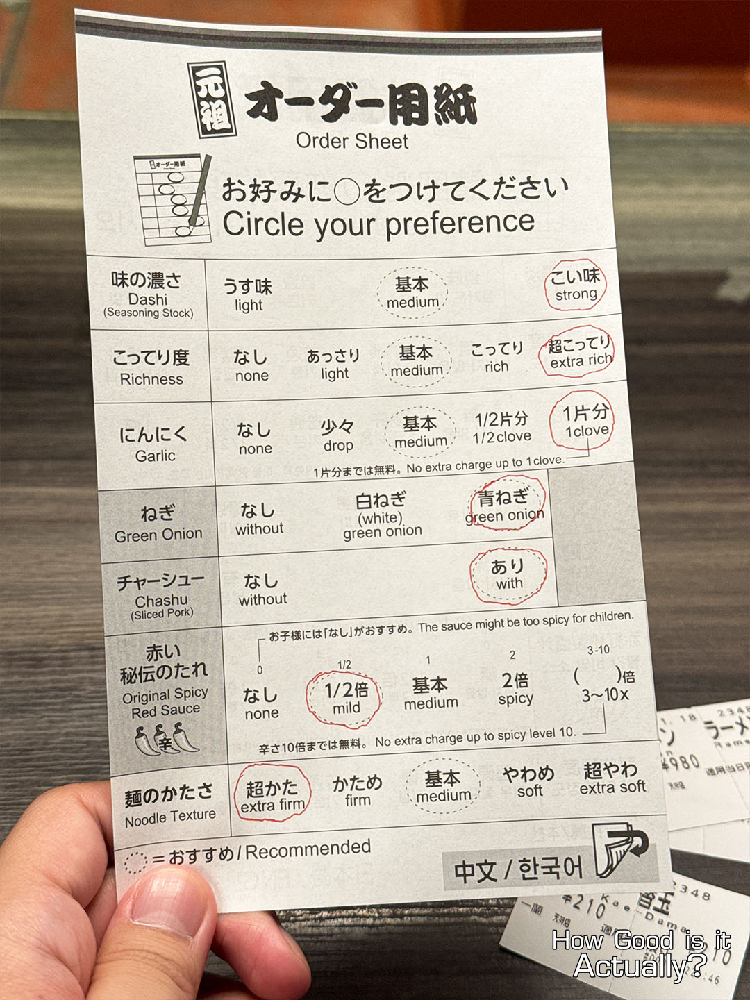 It’s a bit on the extreme end (as my friend found my version way too rich), so if you’re new to Ichiran, I suggest you try out their ‘recommended’ options to get the baseline experience before fine-tuning it to your preference.