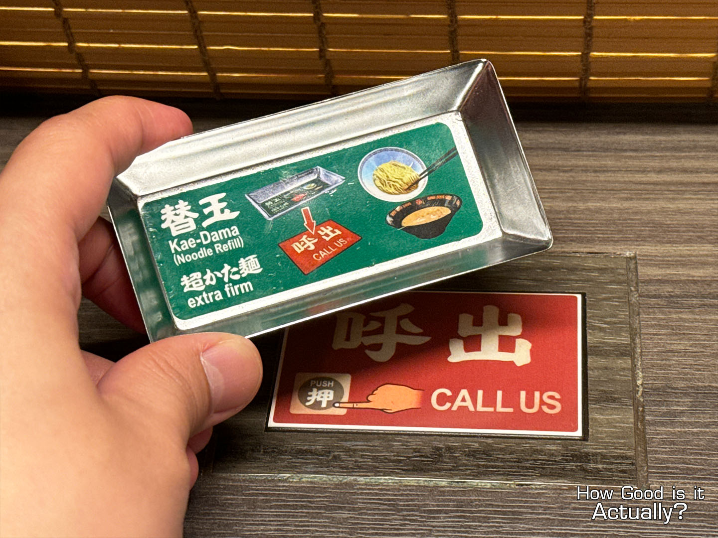 Once you’re ready, hit the “call” button by the table. A staff member will come pick up your order and return shortly with your ramen.