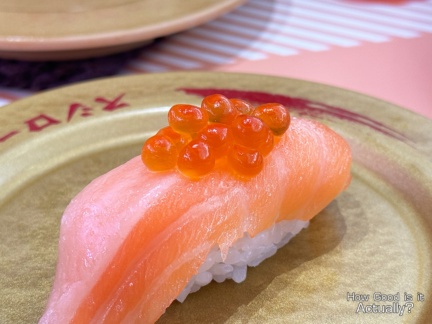 A variation of Sushiro Thailand’s seasonal “Big Slice Salmon Nigiri” – now topped with some Ikura.