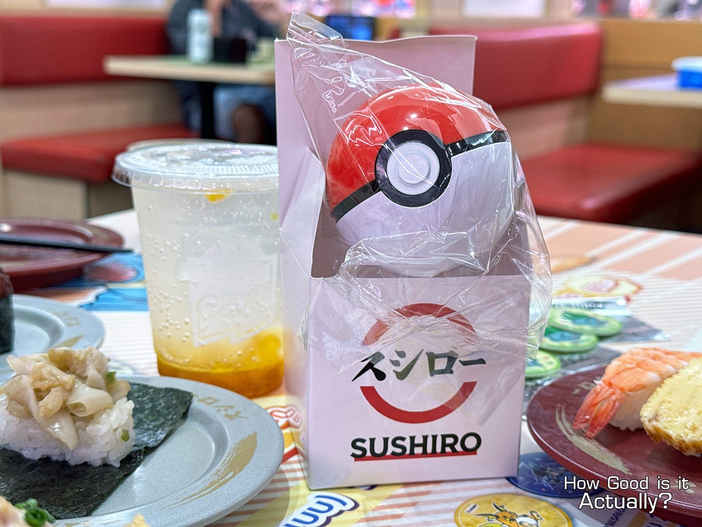 Alongside the drink is a blindbox, featuring a (random) 7cm diameter Pokéball, Great Ball, Ultra Ball, and Master Ball (Sushiro-branded too!)
