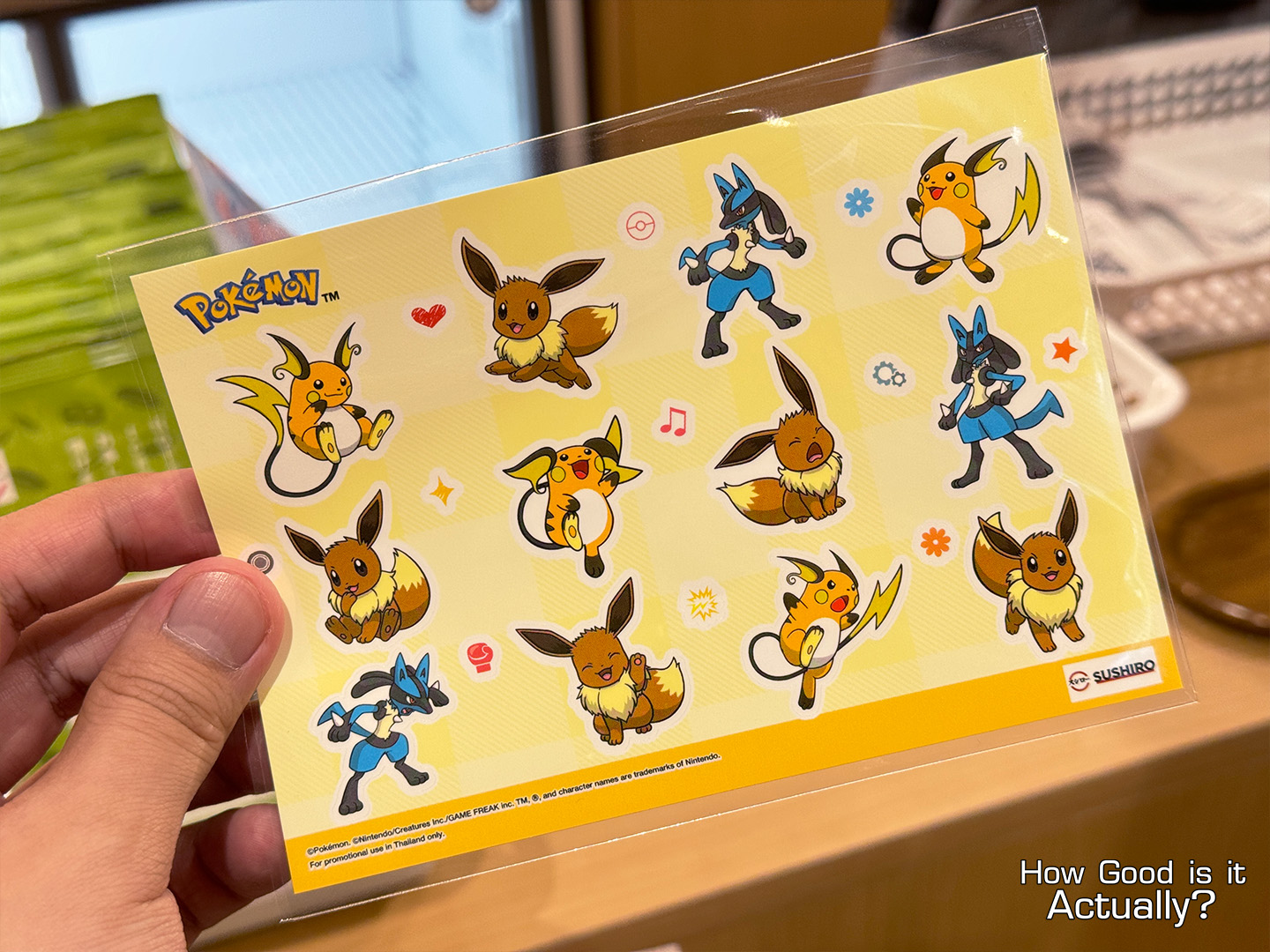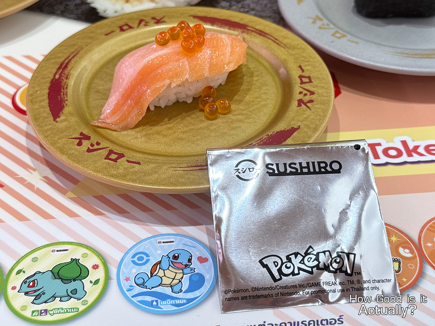So how good is Sushiro Thailand x Pokémon Collaboration actually? Honestly? Quite good! By far the highlight has to be the merch, between the Pokéball, tokens, stickers, and Promo Cards. There’s lots to do here, and it really feels like a high-effort collab instead of the standard placemats and paper cutouts.