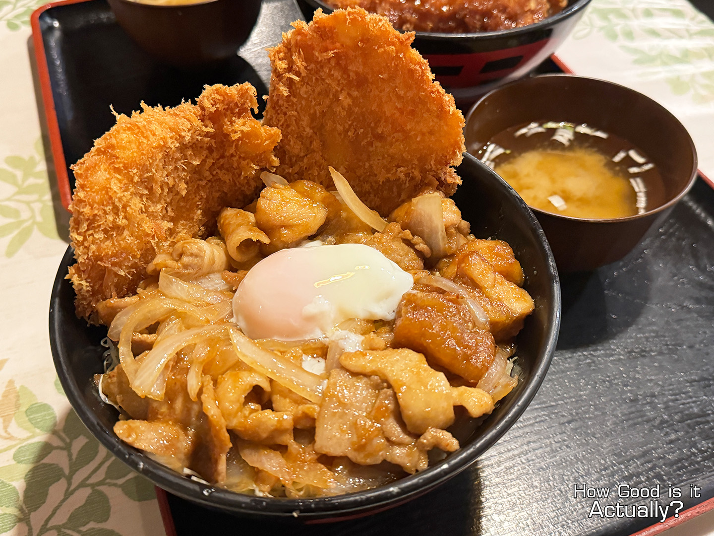 Their signature Stamina Yaro Donburi Extreme features a massive bowl of pork Shoga Yaki, Tonkatsu, and an Onsen Egg, all for just ¥1,080.